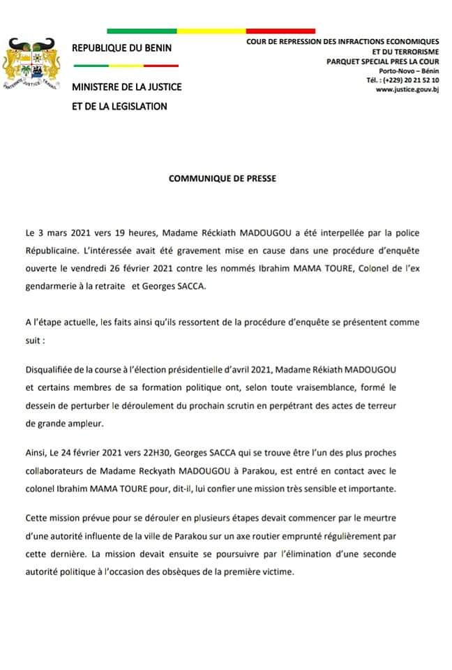 Le procureur spécial près de la (Criet), Mario Metonou, a dévoilé les raisons de l’arrestation de Reckya Madougou ce 03 mars Elie Adeleye Non classé 4 mars 20214 mars 2021 1 Minute L’évolution des informations Partager : Partager sur X(ouvre dans une nouvelle fenêtre) X Partager sur Facebook(ouvre dans une nouvelle fenêtre) Facebook J’aime chargement… Similaire Publié par Elie Adeleye Voir tous les articles par Elie Adeleye Publié 4 mars 20214 mars 2021