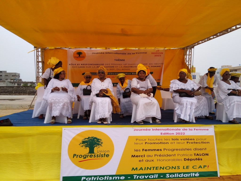 Le parti Politique Union Progressiste a sacrifié à la tradition ce samedi 12 Mars 2022. Il a reconnu et rappelé les droits de la gent féminine. Aux couleurs du baobab, elles ont pris d’assaut le terrain de sport de Midombo. Entourées des grosses cylindrées de la 15 ème Circonscription et appuyées des grandes instances de la coordination départementale du Parti, ces femmes étaient face à leur destin et ont été outillées pour revendiquer et mériter la place qui est la leur. Aux côtés de ces Amazones ce jour dans la 15 ème Circonscription Électorale, on pouvait retrouver Le coordonnateur départemental du parti UP, M. Isidore Gnolonfoun, les Honorables Aguemon, Sedami, et Kogblevi, Mdme Arlette Bello Saïzonou, le CA2 Alexandre Sohou, le CA3 Monsieur Adetonah Omer, le CA4 Monsieur Adedjouman Saliou, les conseillers municipaux Sessinou et Sedjide, les chefs de quartiers UP comme Monsieur Razack Délé Dandjinou de ABOKICODJI Lagune. Les CA5 et 6 étaient représentés. Dans une ambiance très conviviale, les femmes étaient face à leur droit. Dans ce sens, une communication sur le thème de l’édition 2022 était faite. Elle statue sur l’égalité des droits enfin de participer activement au développement. Laquelle est présentée par Madame Annick Djimadja. Chants denses panégyriques, remerciements et mots de reconnaissance à l’endroit du Président Patrice Talon et au parti politique UP pour le travail combien remarquable qui se fait au quotidien pour que la gent féminine puisse enfin retrouver sa place dans la société ont sanctionné la séance au profit des femmes béninoises.