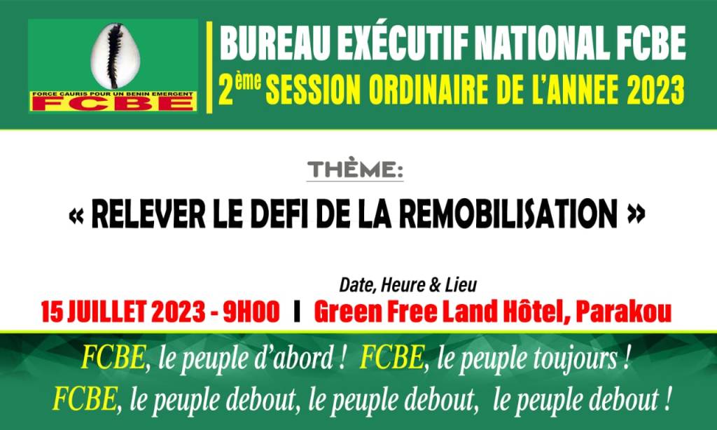 Après Cotonou, la cité des Kobourou accueille la deuxième session ordinaire du parti de l’opposition béninoise. Cette Session Ordinaire du Bureau Exécutif National du Parti Force Cauris pour un Bénin Émergent (FCBE) se tiendra en présentiel avec pour thème: « Relever le défi de la remobilisation ». Elle se déroulera à Green Free Land Hôtel à partir de 9 heures