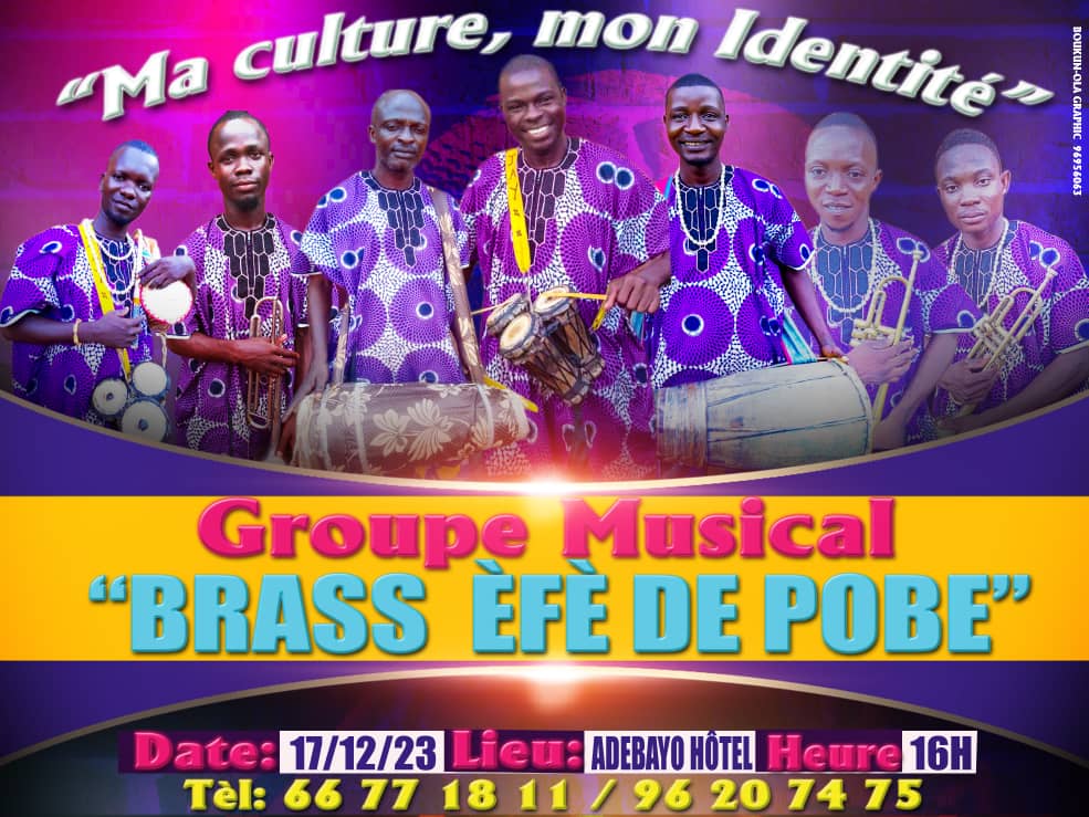 Il urge de savoir que l’Afrique a de très beaux panneaux artistiques que nous ignorons. Alors que la musique est africaine et n’a rien à envier à une autre culture. Dans fort de cette logique que le talentueux musicien Rogatien Assaba et ses pairs se sont décidés pour imprimer une nouvelle marque à la culture Africaine, du la création du groupe musical BRASS ÈFÈ de Pobè. Ce Groupe s’active à révéler au grand jour la richesse de la culture Africaine, Et surtout montrer aux populations que la culture est l’identité et la richesse d’un peuple. Le lancement officiel de ce groupe est annoncé pour le 17 Décembre 2023 à ADEBAYO HÔTEL DE POBÈ à 16 heures très précises, un rendez-vous à ne rater sous aucun prétexte.