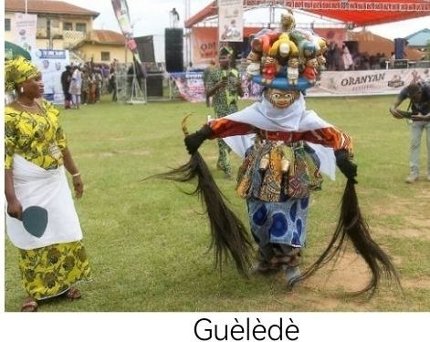 La danse des masques sacrés guèlèdè, de nuit (oro-ifè) et de jour (oro-osan), celle des génies de la forêt, ainsi que celle des Orisa-men (Olorisan), constitue une séquence et un important maillon des festivités et du rituel de la fête d’Ilaman.