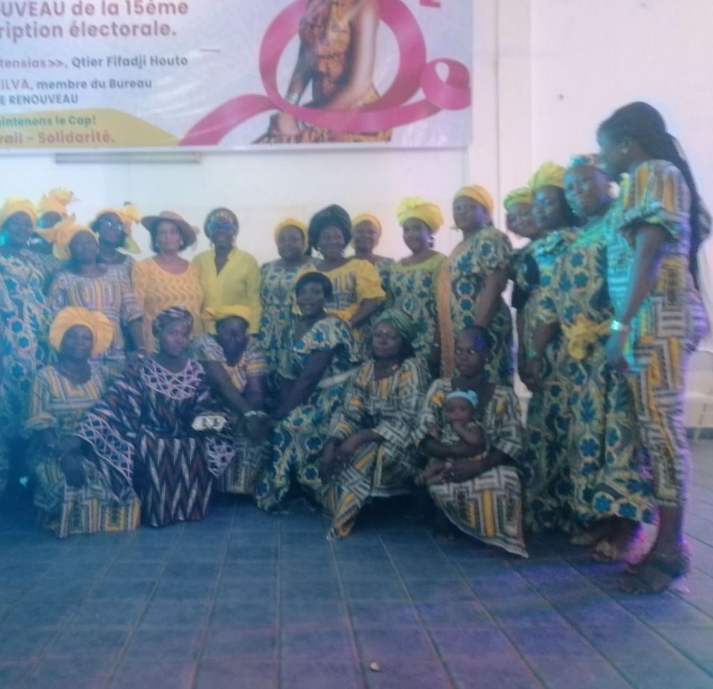 Les vaillantes femmes de la vague du jaune surmontée de l’arc-en-ciel de la 15ème circonscription électorale se sont données rendez-vous à la salle des fêtes  Les Hortensias sise au quartier Jacques de Cotonou sous le Leadership éclairé de Madame Marcelle Da Silva, membre du bureau politique de parti. Très mobilisées elles ont répondu présentes à l’invitation de la marraine de l’événement. Une Célébration de journée Internationale des droits de la femme pleine de sens. Ce fut l’occasion pour ces amazones de discuter des problèmes auxquels sont confrontées les femmes dans leur foyer, de conjuguer au passé, les querelles afin de se donner la main pour mieux avancer dans la vision du parti UP le Renouveau
