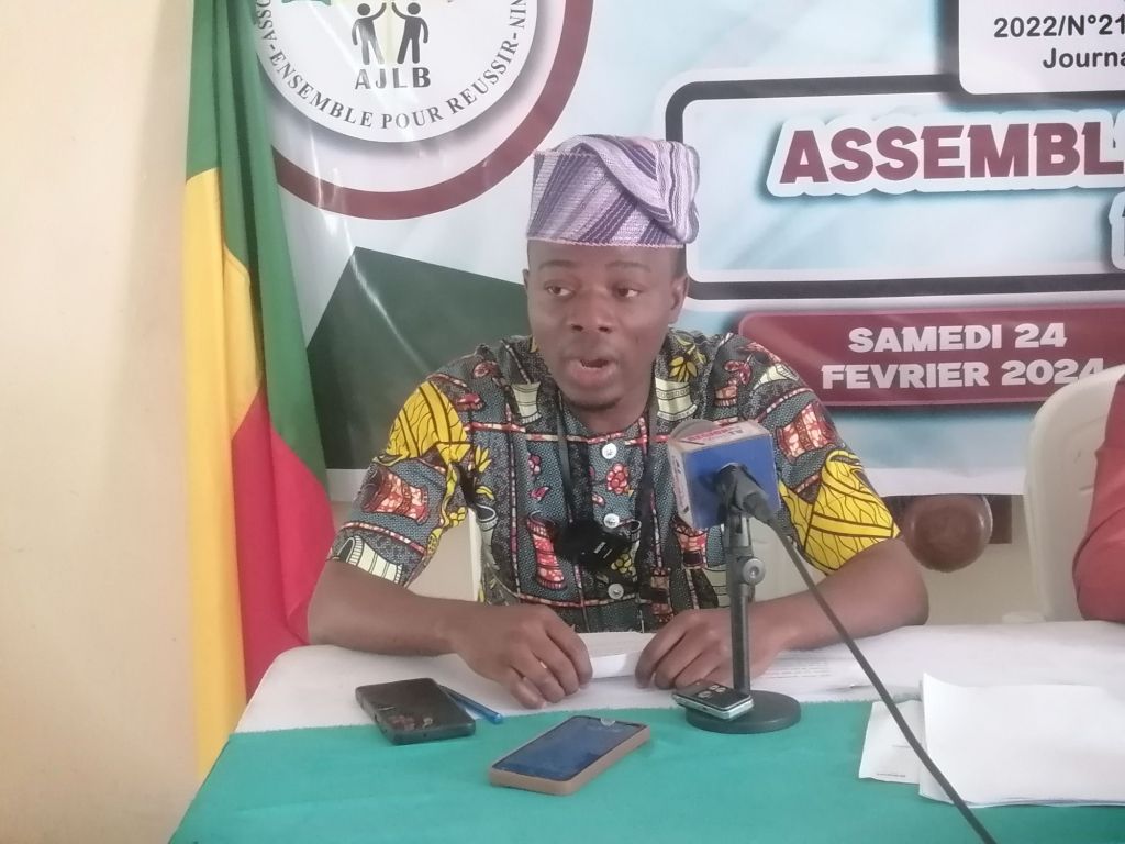 ▪ Chers leaders membres de l’AJLB ; Nous voici, un an après la réussite de l’Assemblée Générale Ordinaire du 15 février 2023, tenue dans la ville de Porto-Novo ; celle qui m’a vu porter aux responsabilités, pour un nouvel exercice statutaire. Il s’agit ici d’un rendez-vous chaleureux qui a pour vocation première de vivifier nos liens de fraternité, de solidarité communautaire à l’occasion de laquelle nous sommes appelés à dresser un bilan et projeter des actions futures. Douze mois durant, nous avons fait une marche qui a exigé de chacun des membres les plus actifs du Bureau Exécutif National, rigueur, assiduité, sérieux, compétence et engagement sans relâche. Nous en sommes arrivés aujourd’hui 24 février 2024 à un stade important qui marque, le début d’une nouvelle période d’engagement que nous sommes à nouveau appelés à vivre avec de gens aussi bien vertueux et compétents que vous êtes. Je suis ému de vous dire combien je suis touché par votre marque de confiance à travers cette aventure et nous avons faite ensemble jusque-là. Avec vous, main dans la main, je m’évertuerai à combler les attentes, à relever les défis qui sont les nôtres. D’ores et déjà, j’ai gardé une posture d’apprenant qui me permet d’apprendre beaucoup à vos côtés pour porter loin les mérites de notre association même au-delà de nos frontières. Tout en me réjouissant des prouesses réalisées sur ce chantier du développement durable à la base, je voudrais féliciter le comité d’organisation pour le sérieux, l’endurance et la détermination, dont chacun des membres a fait preuve pour qu’on en arrive là. Merci aux personnes de bonnes volontés qui ont cru à ce que nous faisons et qui ont œuvré pour la réussite de cette Assemblée Générale Ordinaire. Je vous prie de les encourager à travers une ovation.