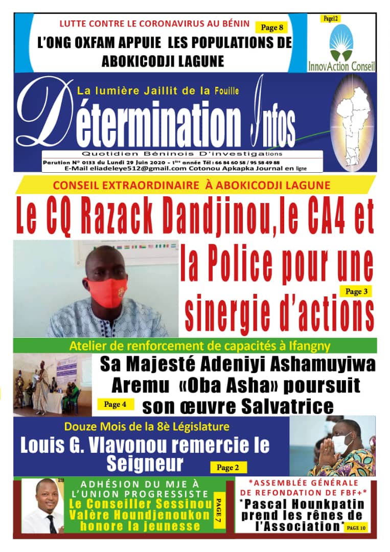 Cette session qui est la première pour les conseillers municipaux nouvellement elus, s’est achevée dans l’après-midi de l’ouverture des assises ce lundi 1er juillet 2020 sous de très bonnes perspectives. Cette session, qui est la première de la quatrième mandature, a connu la participation effective de tous les conseillers municipaux UP et BR .Ils ont été, en effet, 13 chefs quartiers à avoir répondu présents à l’appel de leur président du conseil de l’arrondissement Omer Adétonah. Les membres du conseil ont examiné un à un les 04 points inscrits aux débats. Passant par la prise de contact et échange avec le nouveau chef d’arrondissement,Échange sur les mesures de prévention et de gestion des inondations,Mesures à prendre davantage pour la lutte contre Covid-19 au profit des populations et enfin Divers.Avec les débats plusieurs résolutions ont été prises pour l’amélioration des conditions de vie des populations du 3ème Arrondissement. D’abord, L’édile à annoncé les mesures idoines qui sont entrain d’être prises avec le deuxième adjoint au maire pour répondre éfficacement aux problèmes de l’inondation afin de soulager les populations. Le CA 3 Omer Adétonah n’a pas manqué d’évoquer les diligences à faire auprès de la municipalité pour la réfection des toitures gâtées dans les écoles et centres d’examens destinés à accueillir les élèves. En effet, la question du Covid-19 a été débattue au cours de cette session du faite de l’inquiétude générale au Bénin et les chiffres alarmants, précise l’autorité qui engage tout le conseil communal à un sursaut d’ensemble.D’où la résolution de donner à chaque quartier 500 masques pour assurer davantage la santé des populations face à cette pandémie. le Nº1 des citoyens du 3ème Arrondissement de Cotonou a rappelé que le développement se construit par des populations saines. C’est quand on est en bonne santé qu’on peut participer au processus de développement local, a-t-il indiqué .L’autorité municipale, très satisfaite des échanges, qui ont lieu au cours de cette session a exhorté les Conseillers à un soutien franc et sincère. Elle a saisi l’occasion pour féliciter ses collègues Conseillers,les chefs quartiers pour la qualité du travail abattu. A l’entendre cela augure de l’engagement et du sacrifice dont tout un chacun fera preuve durant les six années que va durer cette quatrième mandature.Désormais les regards sont tournés vers des actions concrètes sur le terrain pour le bonheur des populations. Notons que la bonne ambiance , la convivialité et l’esprit d’ouverture ont caractérisé les échanges entre le CA 3 Omer Adétonah les conseillers et les chefs quartiers.